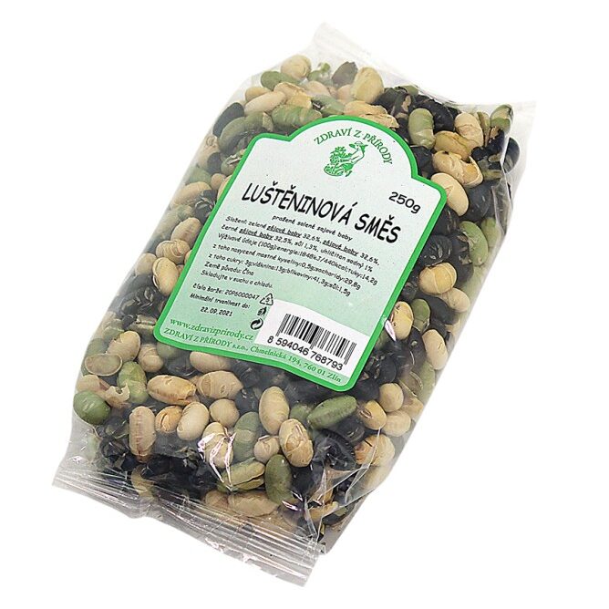 zelené sójové boby 32,6%; sójové boby 32,6%; černé sójové boby 32,5%; sůl 1,3%; uhličitan sodný 1%.